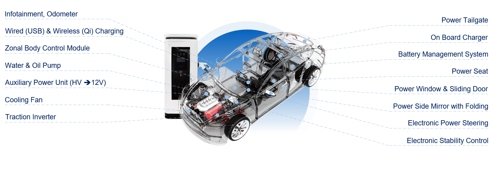 汽車應(yīng)用從有刷電機(jī)到無刷電機(jī),車用照明大量使用 LED 照明的轉(zhuǎn)變,汽車也越來越電動(dòng)化,智能化,催生極大功率器件的需求。捷捷微電 順應(yīng)這一趨勢,車規(guī)級產(chǎn)品持續(xù)聚焦在汽車三電(電池,電源及電機(jī)),車身照明及智能出行 (ADAS, Telematics and Infotainment systems, etc.) 等應(yīng)用。 車規(guī)級 MOSFET 產(chǎn)品布局先進(jìn)封裝的基礎(chǔ)上,盡量降低導(dǎo)通內(nèi)阻的同時(shí),能額外降低器件結(jié)電容效應(yīng),減少 Qg,進(jìn)而提供較高的工作效率,減少發(fā)熱,提供兼容市面主流應(yīng)用先進(jìn)封裝架構(gòu)的高可靠性車規(guī)級產(chǎn)品。 車規(guī)級 TVS 采用獨(dú)特的 CLIP 結(jié)構(gòu),相對于傳統(tǒng)的 A+B 結(jié)構(gòu),可以避免虛焊,減少芯片應(yīng)力,提供高可靠性。針對電源及電機(jī)開關(guān)當(dāng)中可能出現(xiàn)的瞬態(tài)浪涌及各種干擾,捷捷微電 車規(guī)級二極管 (TVS、ESD、穩(wěn)壓/續(xù)流二極管) 可以提供良好的高可靠性保護(hù)。在性能上實(shí)現(xiàn)卓越的鉗位能力、漏電流小、快速的響應(yīng)速度,滿足 AEC-Q101 Rev-E 等級規(guī)范。