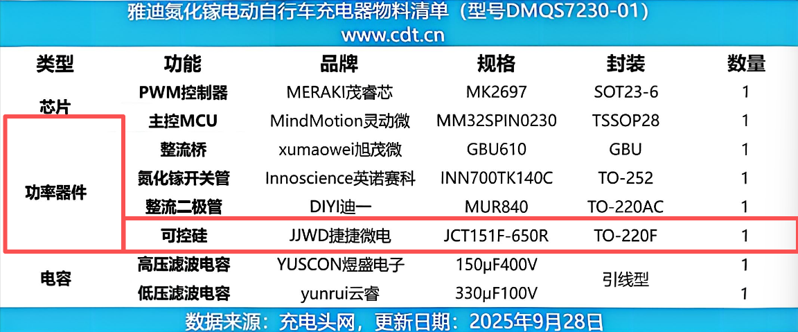 為何雅迪選擇JCT151F-650R? ? ? 高耐壓,更安全:650V的斷態(tài)重復(fù)峰值電壓,足以應(yīng)對(duì)充電過(guò)程中各種復(fù)雜的電壓波動(dòng)與浪涌沖擊,為系統(tǒng)預(yù)留充足的電壓余量。 ? ? 大電流,更穩(wěn)定:12A的有效通態(tài)電流,確保在持續(xù)充電的大電流場(chǎng)景下,器件導(dǎo)通損耗低、發(fā)熱小,穩(wěn)定性與壽命顯著提升。 ? ? TO-220F全絕緣封裝:封裝本身具備良好的絕緣性與散熱性,無(wú)需額外絕緣墊片,簡(jiǎn)化生產(chǎn)安裝流程,同時(shí)提升整機(jī)安全等級(jí)與散熱效率。 安全無(wú)小事,選對(duì)“守護(hù)芯” ? ? 雅迪充電器采用捷捷微電JCT151F-650R,體現(xiàn)了品牌對(duì)產(chǎn)品安全性的極致追求。在電動(dòng)車(chē)充電器這類(lèi)關(guān)乎用戶(hù)生命財(cái)產(chǎn)安全的產(chǎn)品中,核心保護(hù)元器件的選擇,直接決定了產(chǎn)品的安全基線。 ? ? 捷捷微電的功率半導(dǎo)體器件,已在家電、充電電源、工控及汽車(chē)電子等領(lǐng)域獲得廣泛應(yīng)用。公司始終致力于通過(guò)高可靠性、高一致性的產(chǎn)品,為行業(yè)領(lǐng)先客戶(hù)的關(guān)鍵設(shè)計(jì)與創(chuàng)新賦能。如果您對(duì)我們的產(chǎn)品感興趣,歡迎隨時(shí)聯(lián)系我們,也可登錄我們的官網(wǎng)www.sgwstruckparts.com進(jìn)一步了解。