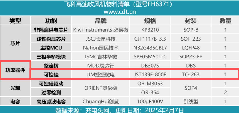 ? ? 在顏值與性能兼具的個(gè)護(hù)賽道,一場關(guān)于「風(fēng)」的革命正在發(fā)生。國產(chǎn)品牌飛科推出的高速吹風(fēng)機(jī)FH6371,憑借11萬轉(zhuǎn)無刷電機(jī)、六種風(fēng)溫風(fēng)模式組合,迅速圈粉新一代用戶。拆解發(fā)現(xiàn),在這款產(chǎn)品的智能電力調(diào)控核心中,捷捷微電可控硅JST139E-800E如同整個(gè)電路的“智能指揮官”,精準(zhǔn)調(diào)度每一股電流,安靜卻強(qiáng)大地支撐著整個(gè)吹風(fēng)機(jī)的流暢運(yùn)轉(zhuǎn)。